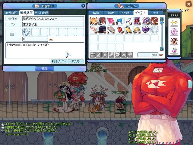 そうそう。秩序のクリスタル拾ったのであづみゃに送っておきましょうね( ^ω^ )