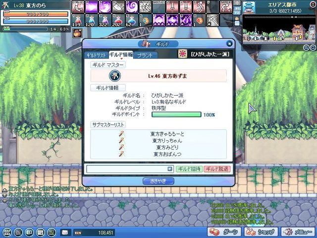 ※画像は数日前のものです。現在はギルドレベル4になっています。人数は20人くらいかな。