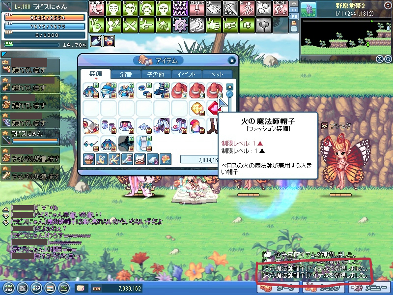 [火の魔法師帽子]アイテムを獲得しました