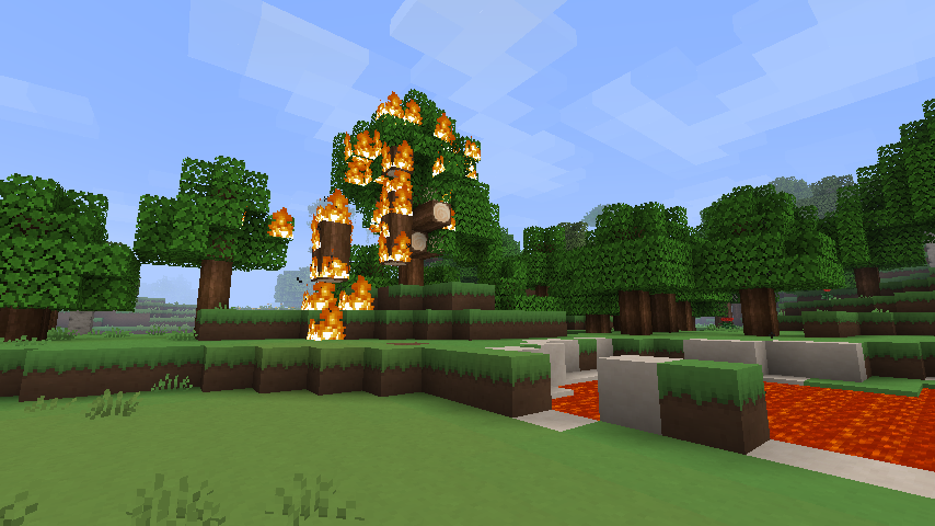 マイクラでは山火事の現場に遭遇。