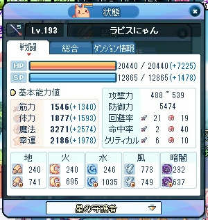 これでHPが20k超えるので、闇の風石ができるまではこの装備で。