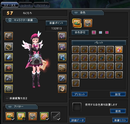 染色可衣装をつけてステータス画面を開くと、